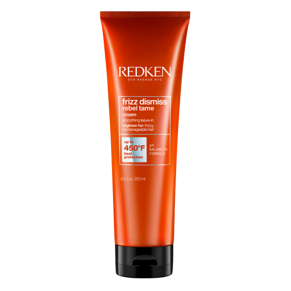 Protector térmico en crema Rebel Tame Frizz Dismiss Anti Frizz 250ml: Este leave-in protege el cabello hasta 230°C mientras combate el frizz, desenreda e hidrata el cabello seco y rebelde. Gracias a su fórmula libre de sulfato y cloruro de sodio, deja el cabello con mayor suavidad y manejabilidad.