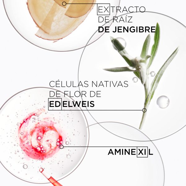 Nuestra colección de máscaras está compuesta por células madre de Edelweiss y raíz de jengibre con sus propiedades antioxidantes, preservación de colágeno y la protección de agresiones externas entrega una acción dual fortificante y anticaída.
