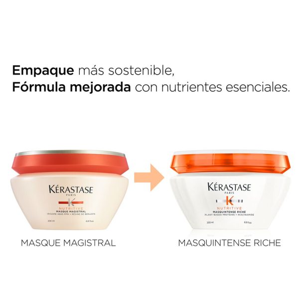 Masquintense Riche tiene una textura cremosa blanca rica y espesa, por lo que es un tratamiento ideal para el cabello muy seco.